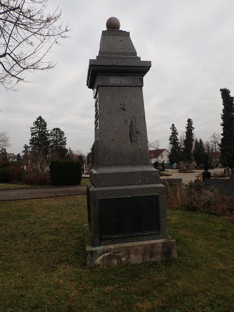 Das Denkmal, das leider im 2. Weltkrieg sehr stark gelitten hat (Metallgewinnung) und in seiner ursprünglichen Form nicht mehr erhalten ist, wurde im Jahre 1955 im Zuge der Marktplatzumgestaltung im Friedhof wieder errichtet.