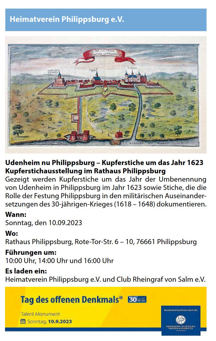 Veranstaltungen zur 400-Jahr-Feier der Namensgebung Philippsburg