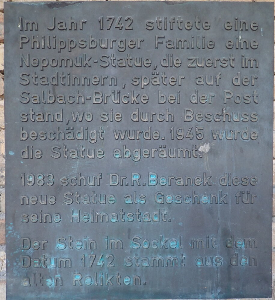 Die alte Nepomukstatue aus der „Burda-Anlage“ steht nun witterungsgeschützt im offenen Bereich des Museumsanbaus.