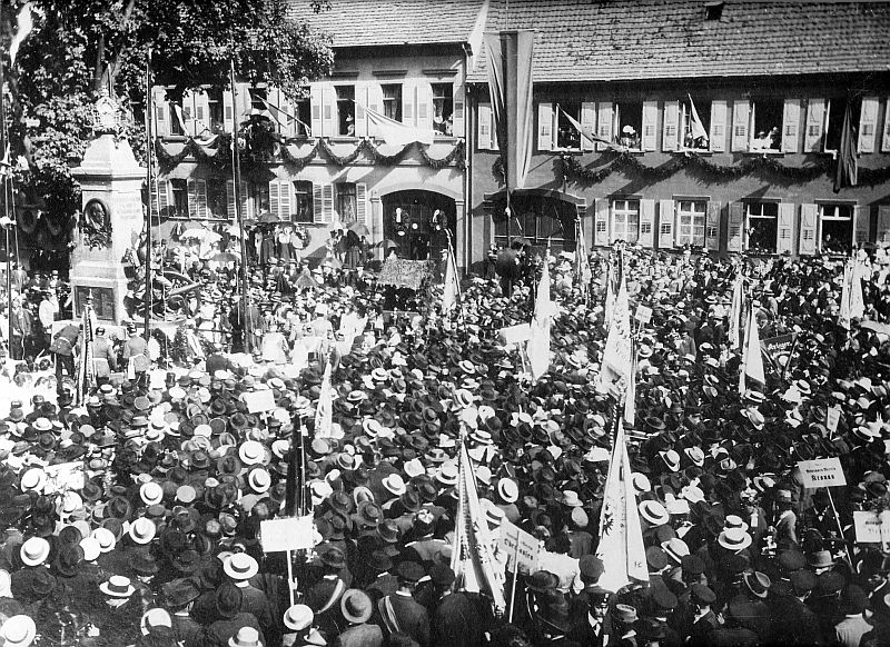 Im Jahre 1899 waren die Gelder beisammen und das Denkmal errichtet; gerade der richtige Zeitpunkt, waren doch hundert Jahre vergangen, seit Philippsburg aus Schutt und Asche wieder neu erblühte. Eine ansehnliche Festschrift mit einem kurzen geschichtlichen Überblick von Philippsburg führte die Gäste durch das reichhaltige Programm. Es begann am Vorabend mit einem großen Fackel- und Lampionumzug durch die Straßen der Stadt und fand seinen Höhepunkt am Sonntag bei der Enthüllung des Denkmals unter dem Beisein Seiner Königlichen Hoheit des Großherzogs und vieler prominenter Gäste.